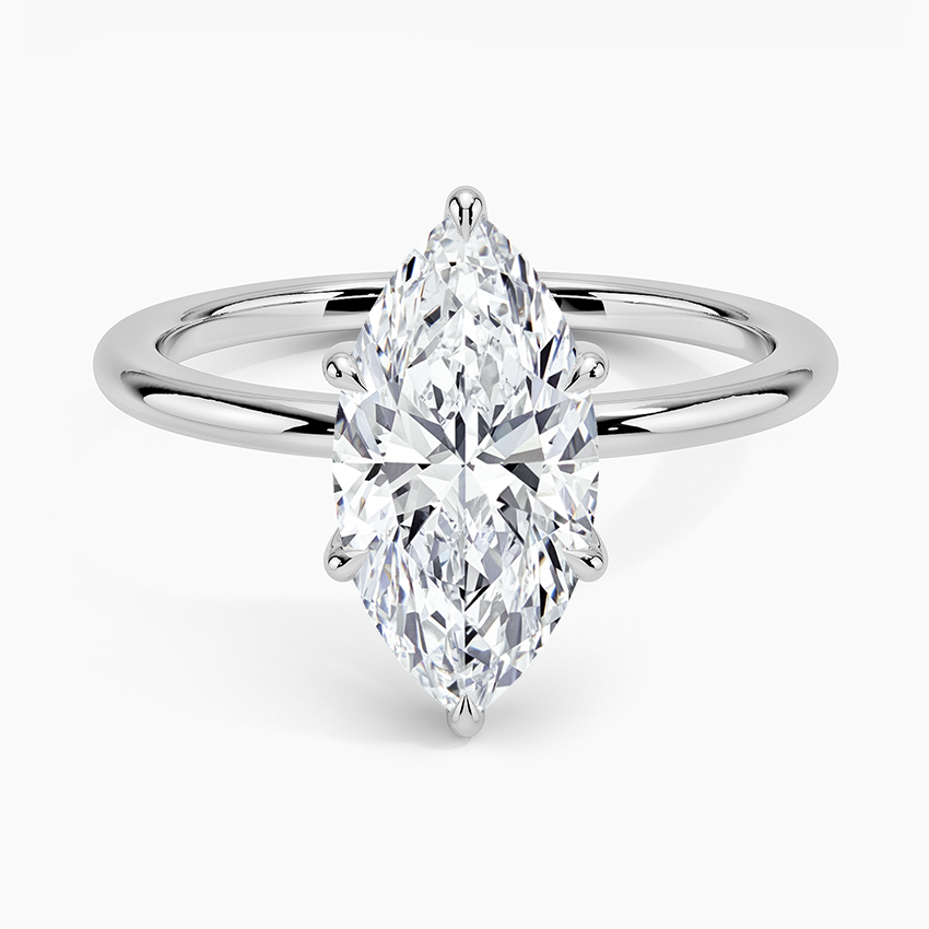 Marquise Lab Diamond - Solitaire Engagement Ring in 18k White Gold