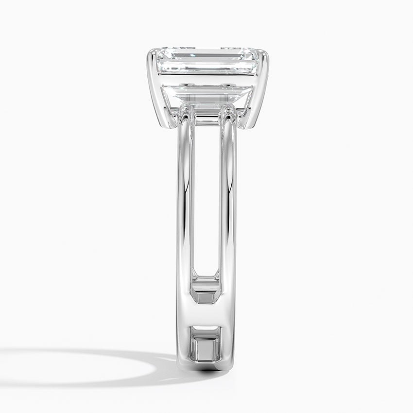 Ultra thin bands create a chic open double band look in this distinctive design. Classic claw prongs complete the look with a sleek finish.