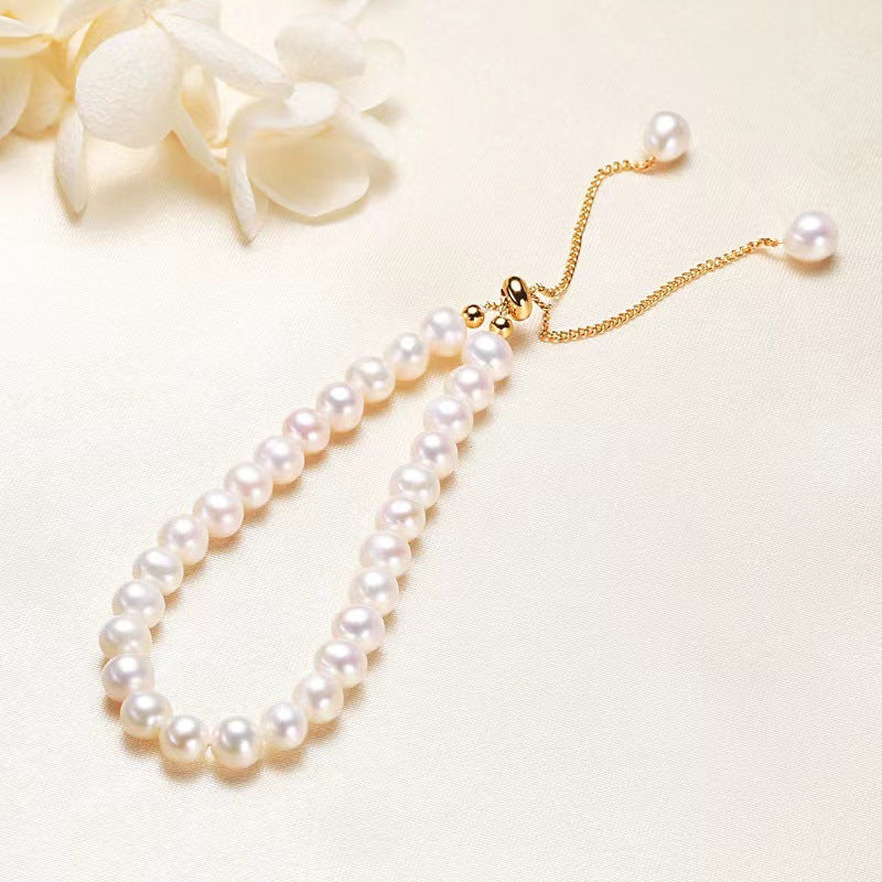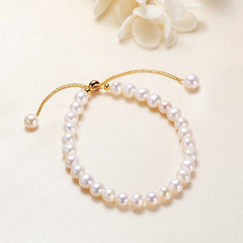 Made with freshwater pearls, this bracelet embodies minimalist elegance with its simple, refined design. The natural luster of the pearls adds a touch of understated luxury, making it a perfect accessory to enhance any outfit with effortless sophistication.