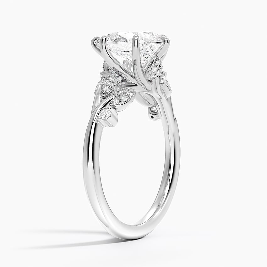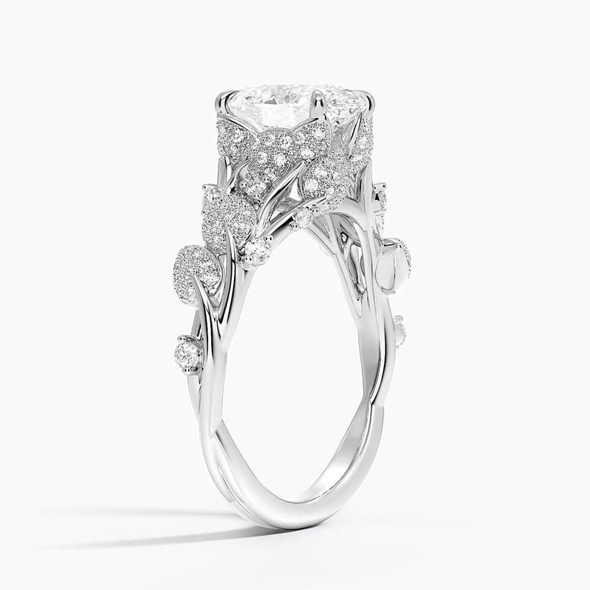 Micro-pavé diamonds adorn beautiful leaves in this unique nature-inspired design while claw prongs complete the look with a sleek finish (1/5 total carat weight).