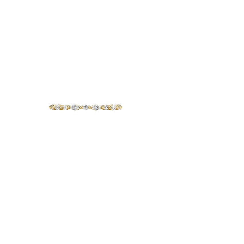 Alternating round and marquise diamonds create an alluring pattern across the top of this chic and distinctive ring.