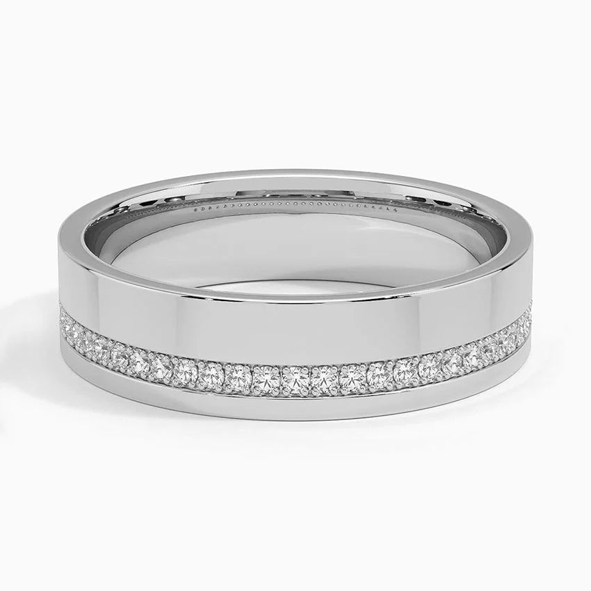 Contemporary and refined, this high-polish band features lab-grown pavé diamonds set halfway around for subtle brilliance. A rounded interior edge ensures all-day comfort.