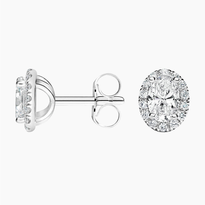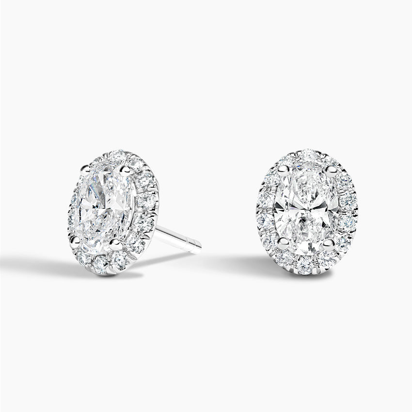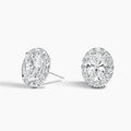 These timeless stud earrings showcase oval-cut lab-grown diamonds at their center, elegantly framed by a luminous halo of brilliant round lab-grown diamonds. The result is a mesmerizing design that enhances the center stone’s brilliance with an exquisite aura of light.