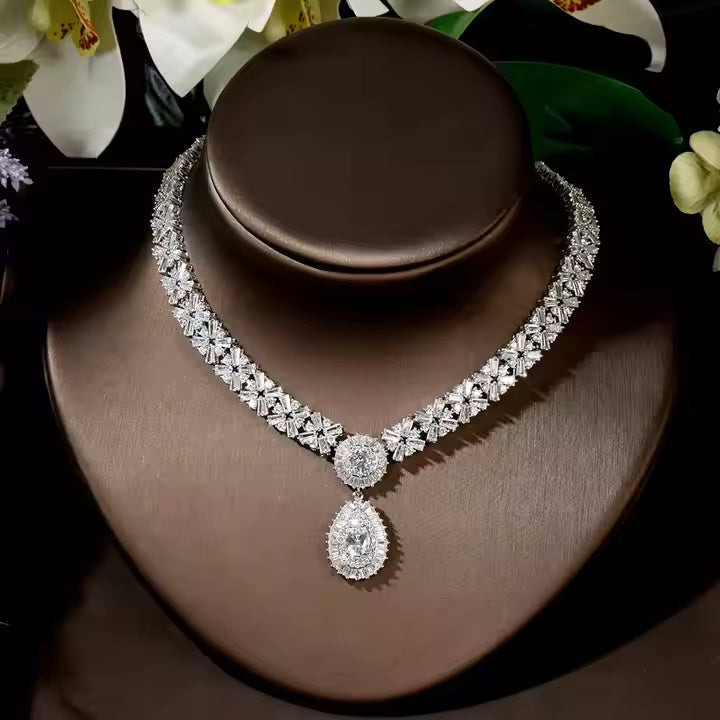 This elegant necklace and matching earrings feature shimmering zircon stones, making it the perfect gift to show your love and appreciation.